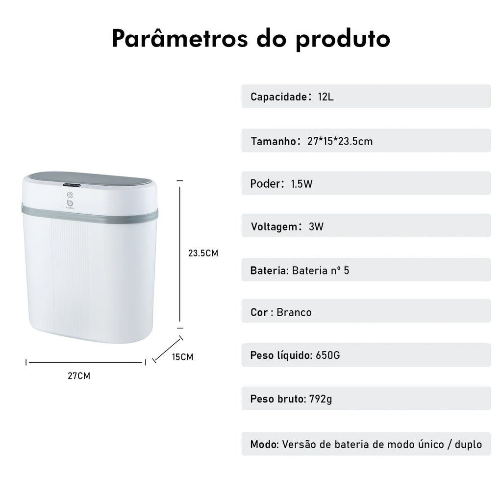 ✔️ Capacidade de 12 Litros – tamanho perfeito para cozinha, banheiro ou escritório, evitando trocas frequentes.